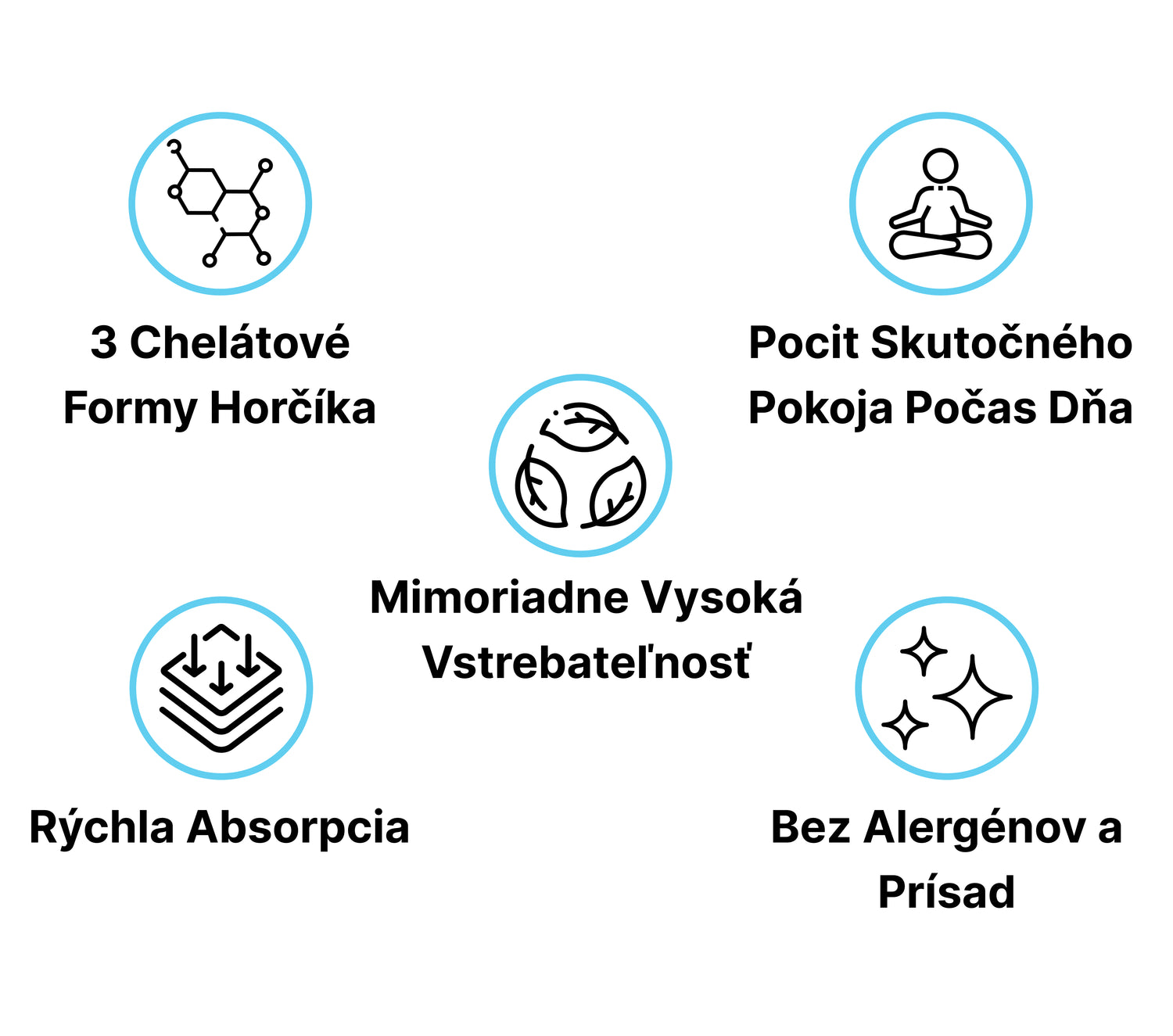 Dodáva tri vysoko kvalitné chelátové formy, klinicky preukázané, že sa vstrebávajú až do 80%, takže Vaše telo skutočne využíva to, čo mu dáte — rýchlo.